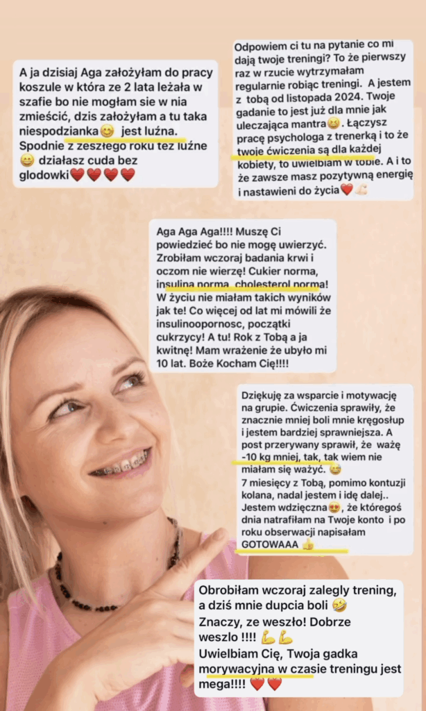 - Z czasem zauważysz też naturalne „uboczne efekty”: jędrniejsze ciało i mniejszy rozmiar ubrań.