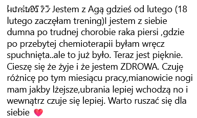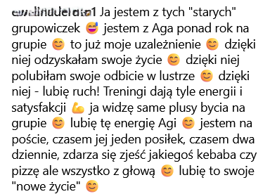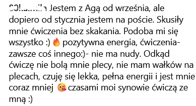 Widziałam już wiele historii. Kobiety, które zaczynały bez kondycji, z bólem pleców, po ciąży, z obniżoną samooceną – dziś są silne, zdrowe i dumne z siebie.