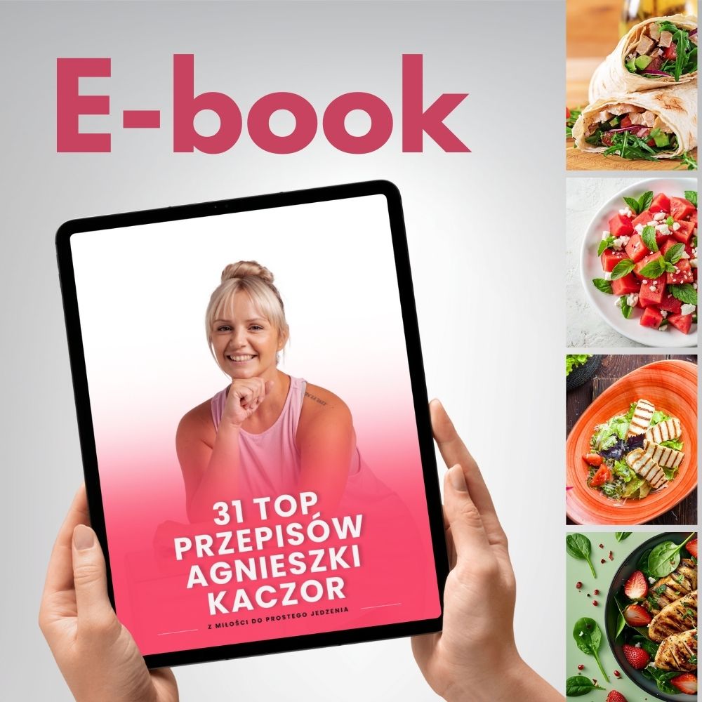 31 Top przepisów Agnieszki Kaczor – ebookTen e-book to 31 prostych, lekkich i wspierających przepisów, które pomogą Ci jeść intuicyjnie – bez liczenia kalorii, wyrzeczeń i presji. Znajdziesz tu szybkie dania, które dodają energii, sycą bez ciężkości i pasują do Twojego rytmu dnia. Bez podziału na posiłki – pełna swoboda i przyjemność z jedzenia. Idealny dla kobiet, które chcą jeść dobrze, słuchając swojego ciała, nawet w najbardziej zabiegane dni.